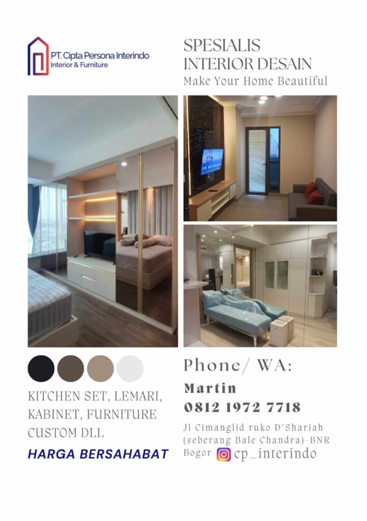 PT. Cipta Persona Interindo adalah perusahaan design and build untuk kebutuhan interior furniture anda, siap memberikan pelayanan yang terbaik dalam hal design, pelaksanaan, kualitas dan harga, dengan tenaga spesialis yang berpengalaman.