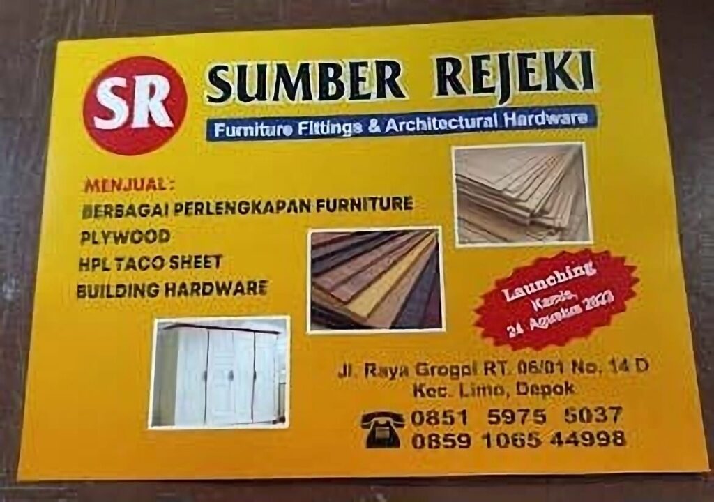 Juga menjual bahan bangunan seperti pintu alumunium, pintu PVC konblok, pipa PVC dan material bangunan lainnya.